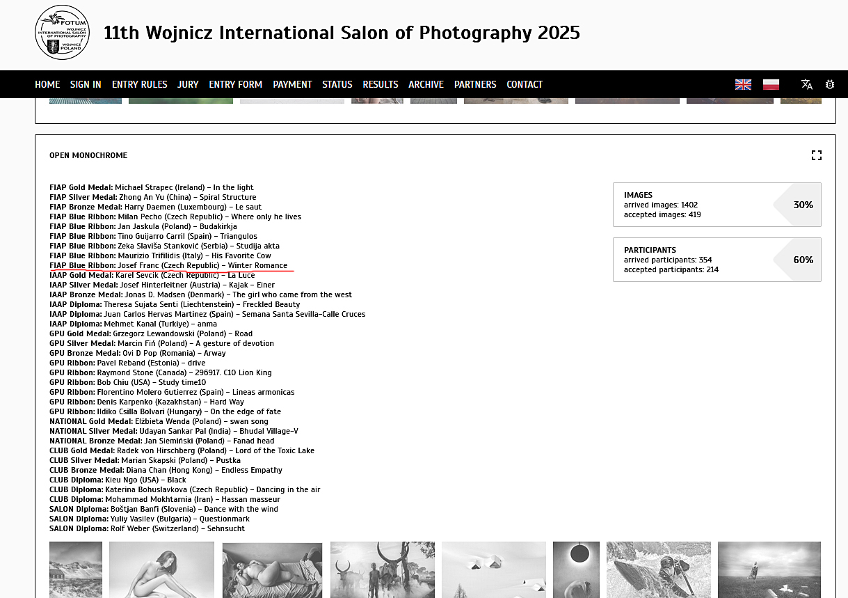ÚČAST NA MEZINÁRODNÍCH FOTOGRAFICKÝCH SOUTĚŽÍCH ZA PODPORY